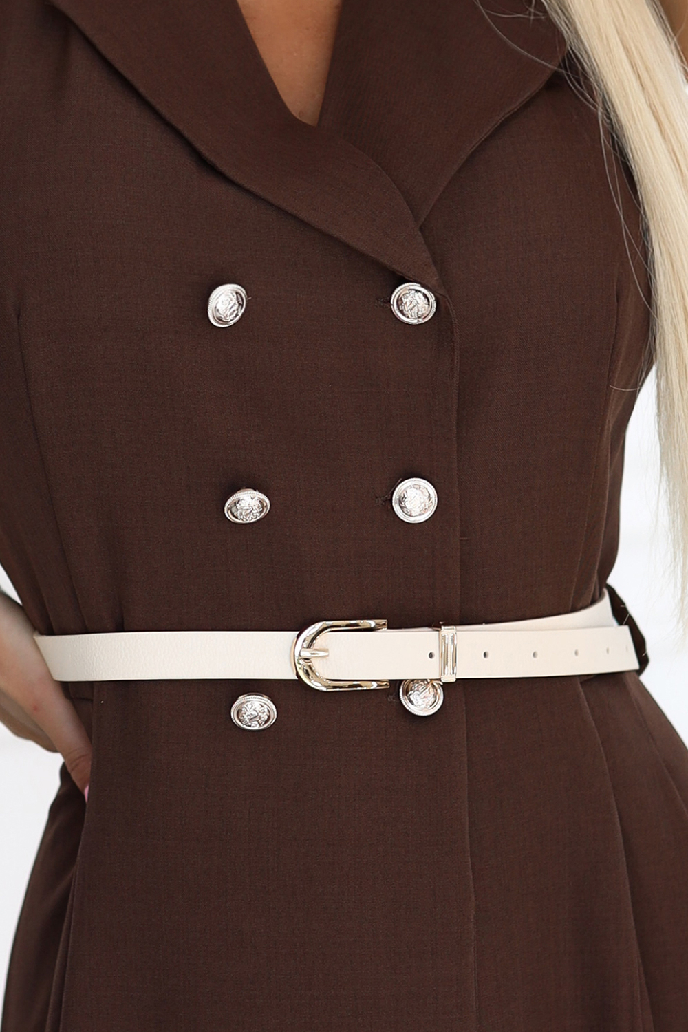 596-4 Елегантна рокля-риза миди със златни копчета и колан - шоколадов цвят Тази рокля-риза в шоколадов цвят с миди дължина от Numoco Basic съчетава класическа елегантност с модерен усет. Моделът без ръкави с яка, декоративни копчета и колан на талията красиво подчертава силуета, а разкроеният подгъв добавя нотка лекота и женствен чар. 596-4 Елегантна рокля-риза миди със златни копчета и колан - шоколадов цвят Тази рокля-риза в шоколадов цвят с миди дължина от Numoco Basic съчетава класическа елегантност с модерен усет. Моделът без ръкави с яка, декоративни копчета и колан на талията красиво подчертава силуета, а разкроеният подгъв добавя нотка лекота и женствен чар.