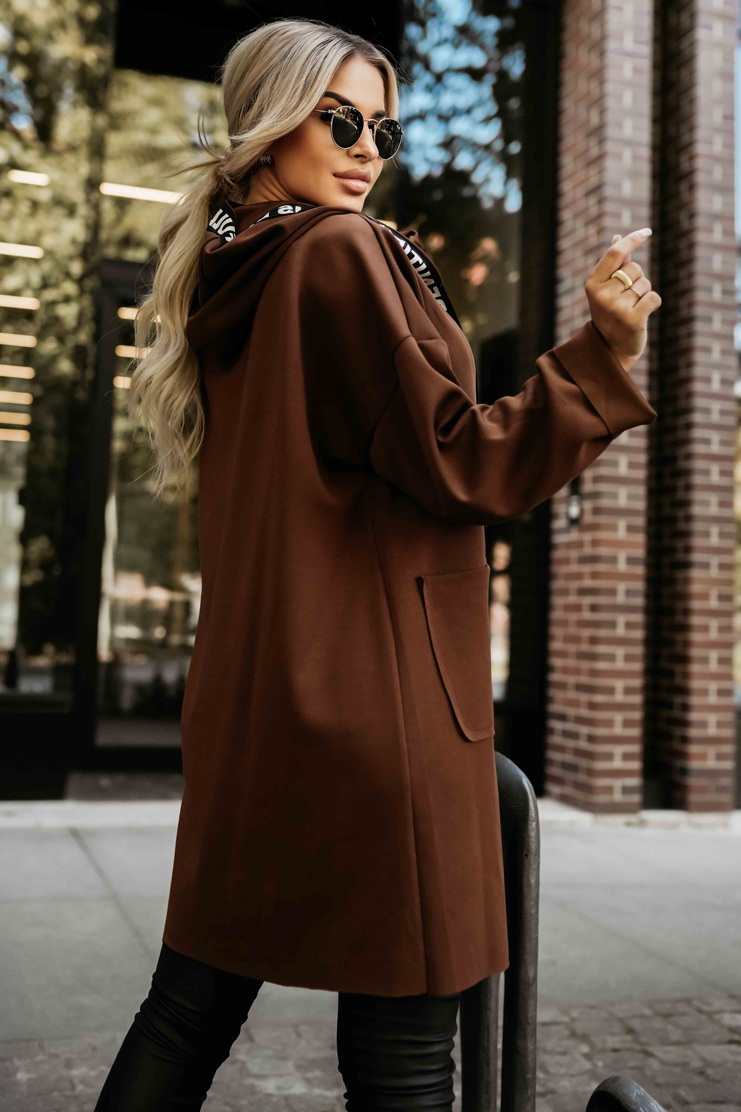 Свободната кройка осигурява свобода на движение, а практичните джобове му придават градски характер. Шоколадовият оттенък придава елегантност и прави палтото идеално както за спортни, така и за по-елегантни визии.
